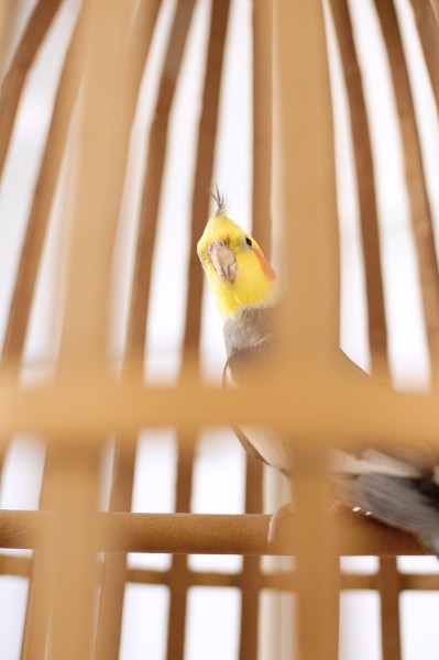 Céline Struger; OK OK OK; Stahl, Steingut, Vogelkäfig, Sittich