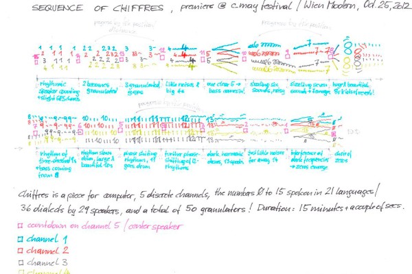 "Die ständigen Veränderungen und Adaptionen von Strukturen, Werkzeugen, Klängen, bestehenden Werken, Ideen und Realisierungsmethoden sind charakteristisch für meine Arbeitsweise und machen auch meine künstlerische Identität aus. Dennoch stellt sich, ungeachtet permanenter Entwicklung der Formensprache, eine Kontinuität, eine spezifische Eigenart des Ausdrucks heraus, die mich durchaus überrascht. Ich werde in erster Linie über Transformationen und den Wandel der Arbeitsbedingungen sprechen, auch anhand konkreter Beispiele, die das Vertiefen ästhetischer Motive verdeutlichen. Aber ich möchte außerdem, vorzugsweise im Gespräch, der Frage nachgehen, in welchem Ausmaß die Mittel zur Produktion und deren Voraussetzungen das künstlerische Werk prägen und wie trotzdem langfristige Charakteristika enstehen können."