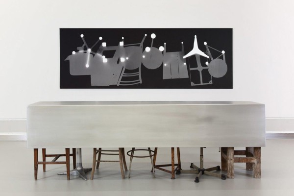 Bar; 2001; Fotogramm auf Barytpapier auf Aluminium, 110 x 315 cm / Aluminium, Möbel, 90 x 280 x 50 cm